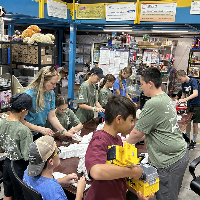We couldn’t do what we do without the help of volunteers. Who can help? Anyone and everyone of all ages and abilities! Whether you want to come on your own or with your family, service group, school, business, or church…you are welcome to volunteer at More Than a Bed. From sorting clothes, cleaning donated toys, scrubbing shoes in our cobbler station, pinning together socks, putting together furniture, and whatever other needs pop up- there’s always something to help with. Typical volunteer shifts are during our business hours: Wednesday – Friday, 8:30am – 1:30pm and the 1st and 3rd Saturday of each month, 8:30am-1:30pm. We sometimes have special events outside of those hours that we need volunteers for as well.